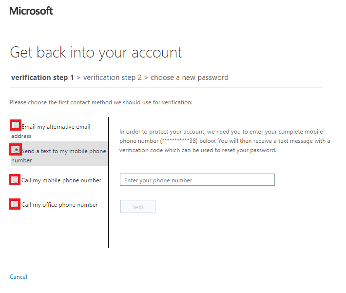 Microsoft's Reset Password link and enter your Admin username. Enter the verification text and click